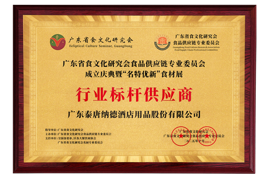 在庆典颁奖环节,广东省食文化研究会基于泰唐在产品创新、服务品质及行业推动力等方面的卓越表现,正式授予其“行业标杆供应商”称号。研究会负责人表示,泰唐以不懈的匠心精神,推动了餐饮器具的标准化与艺术化进程的发展。