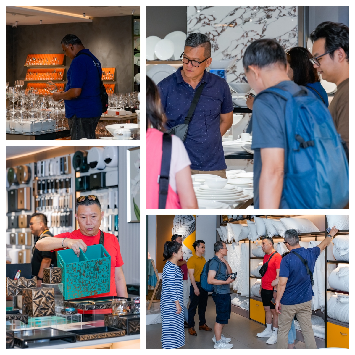 随后,代表团移步至泰唐产品展厅进行参观。嘉宾们对陈列有序、品类繁多的产品表现出了浓厚的兴趣。展厅内,从精美典雅的瓷器餐具、玻璃器皿,到专业高效的厨房设备与用品;从舒适柔软的酒店布草,到设计精巧的客房用品,泰唐完整的产品线与卓越的产品品质给来宾们留下了深刻印象。协会代表在参观过程中,就多个产品的材质、工艺及应用场景与泰唐的技术人员进行了深入且细致的交流。