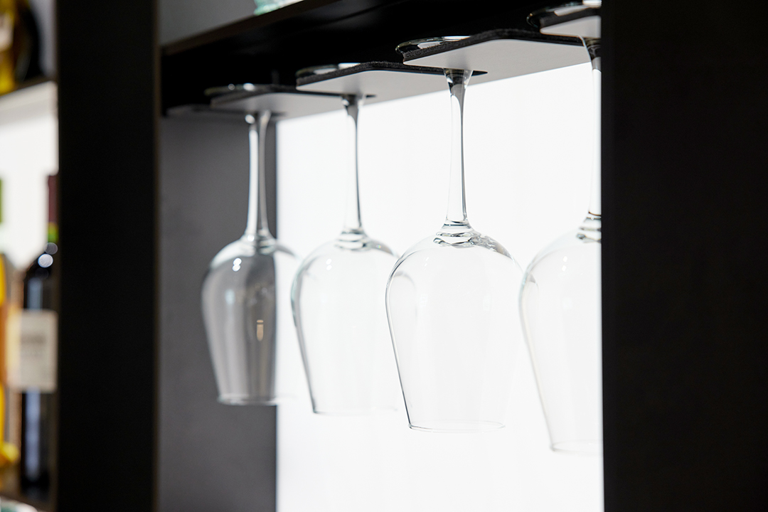 •杯与杯之间要留有间隙,避免直接碰撞。专业品酒杯建议采用悬挂式杯架,这是最理想的存储方式,能很大程度避免损伤和落灰。