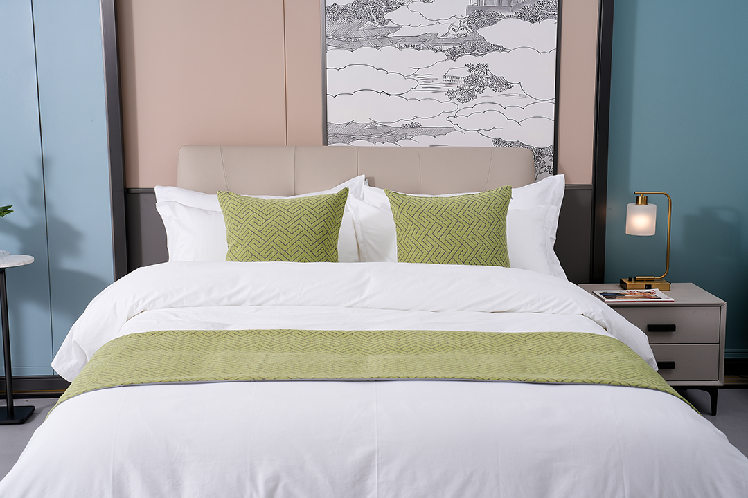 对于追求个性化表达的酒店来说,选择彩色布草意味着需要在美观与实用之间找到平衡点。一种折中方案是采用“白色为主,色彩点缀”的策略——保持主要床品为白色,而通过抱枕、毯子或装饰织物来增添色彩,这样既满足了视觉创意,又避免了大量的养护难题。